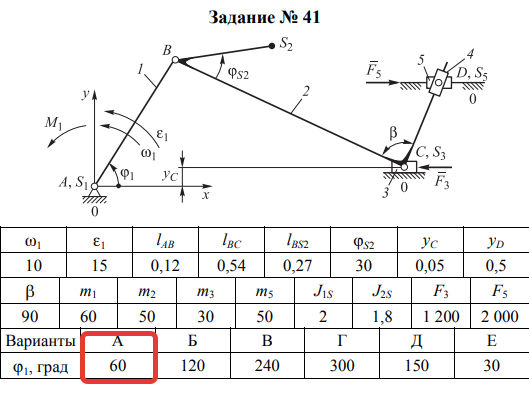 ДЗ 1: Кинематический анализ (Угол 60) (Все построения выполнены в Компас 3D) вариант 41
