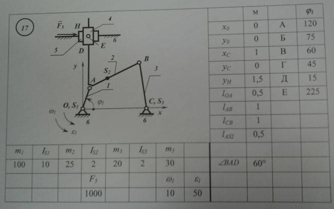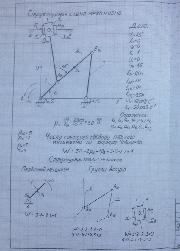 ДЗ 17: Структурный, кинематический и силовой анализы механизма вариант Г