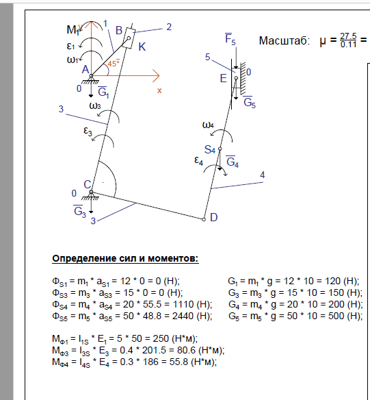 ДЗ 3: Силовой анализ плоского рычажного механизма (Вариант 13/AutoCAD) вариант 13
