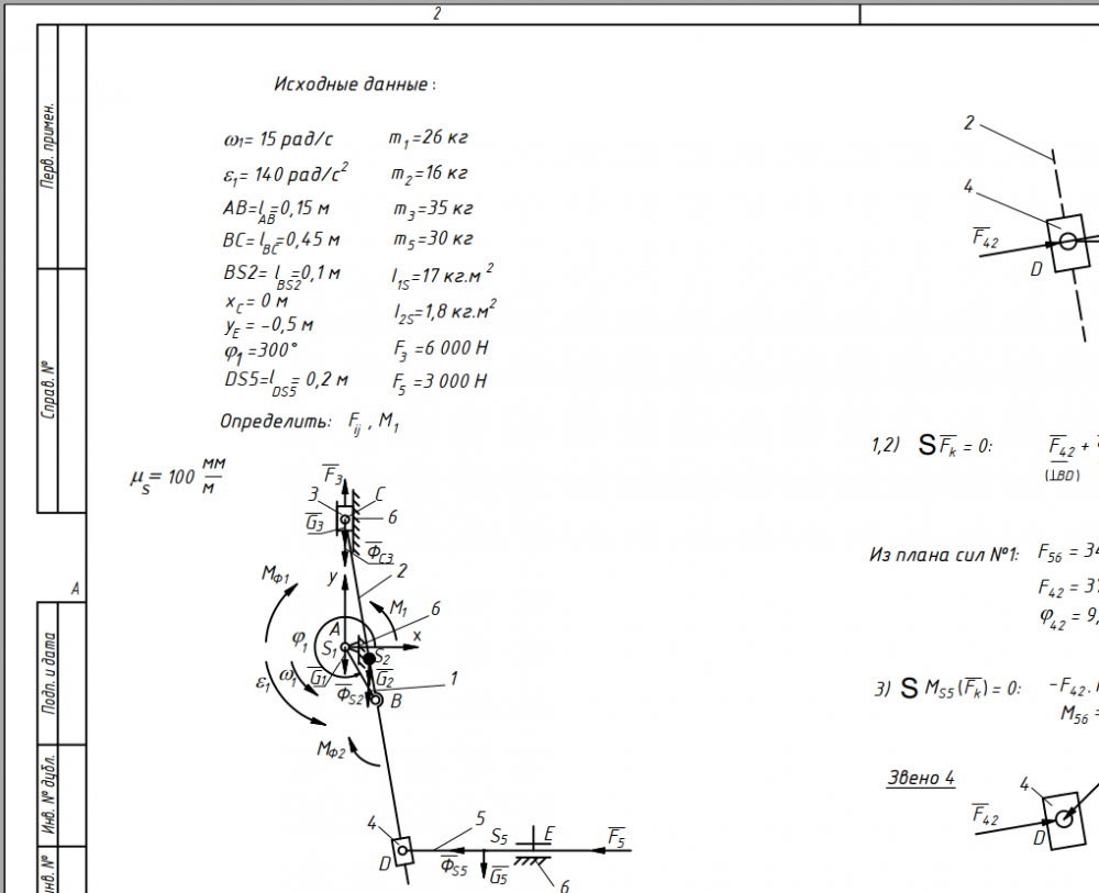 👉ДЗ №1 + №2: Структурный + Кинематический анализ и Силовой анализ рычажного механизма Варианта 6Г (Угол 300 град)