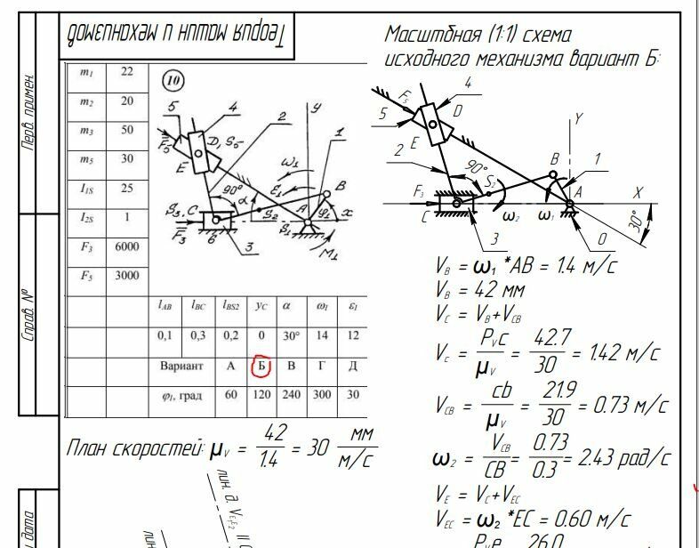 ДЗ 1, 2: Кинематический и силовой анализ рычажных механизмов вариант 10