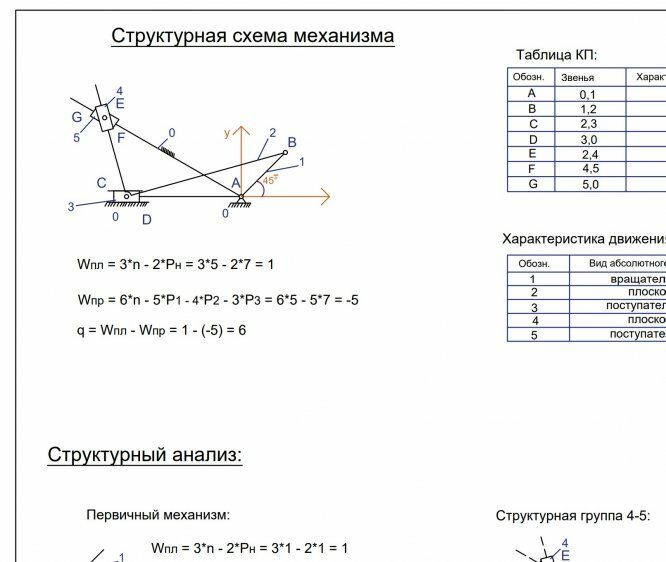 Вариант 10 - ДЗ №1 - структурный анализ рычажных механизмов (угол 45)