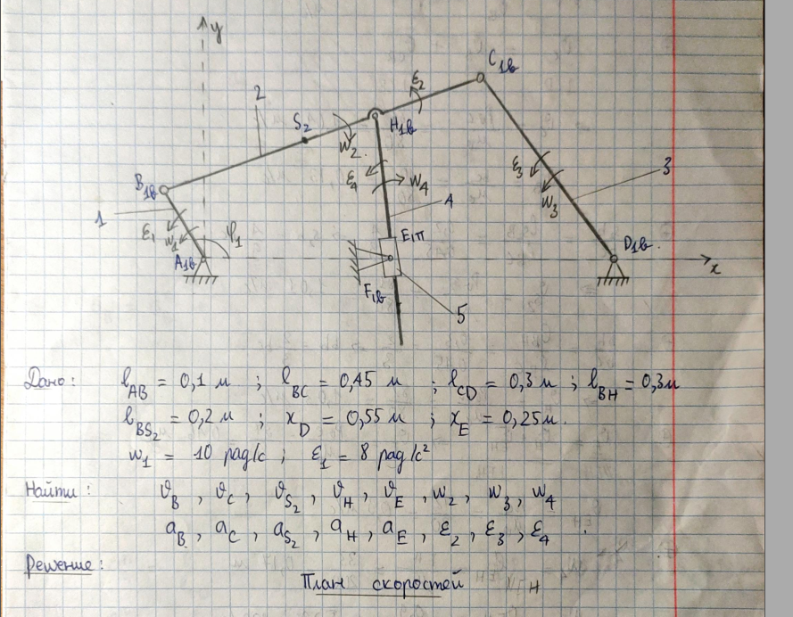 Для студентов МГТУ им. Н.Э.Баумана по предмету Теория механизмов и машин (ТММ)Кинематический анализ механизмаКинематический анализ механизма