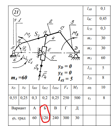 ДЗ 1: Кинематический анализ механизма вариант 21