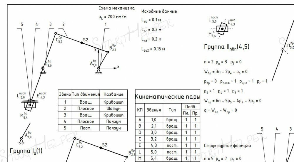 Для студентов МГТУ им. Н.Э.Баумана по предмету Теория механизмов и машин (ТММ)Структурный и кинематический анализСтруктурный и кинематический анализ