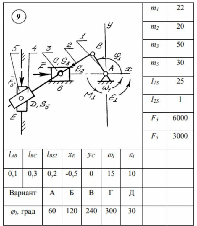 Вариант 9А - ДЗ №1 - Кинематический анализ механизма (угол 60)