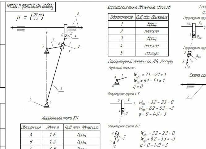 Для студентов МГТУ им. Н.Э.Баумана по предмету Теория механизмов и машин (ТММ)Структурный анализ механизмаСтруктурный анализ механизма