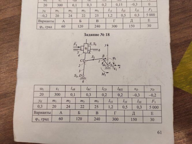 ДЗ 1, 2: Структурный и кинематический анализ + Силовой анализ вариант 18