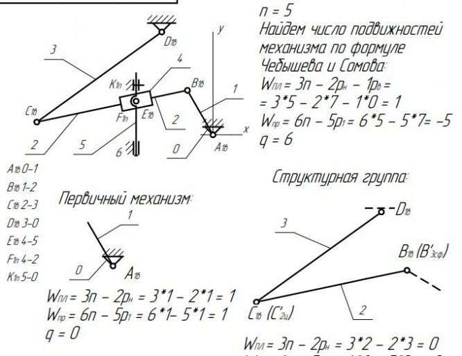 Для студентов МГТУ им. Н.Э.Баумана по предмету Теория механизмов и машин (ТММ)Структурный и кинематический анализ механизмаСтруктурный и кинематический анализ механизма