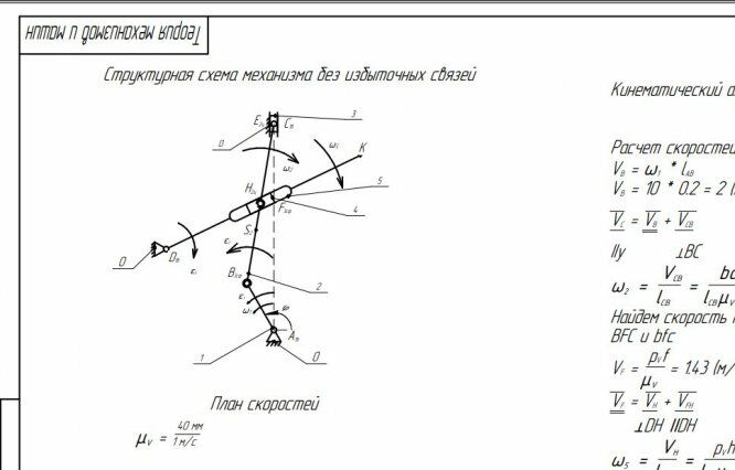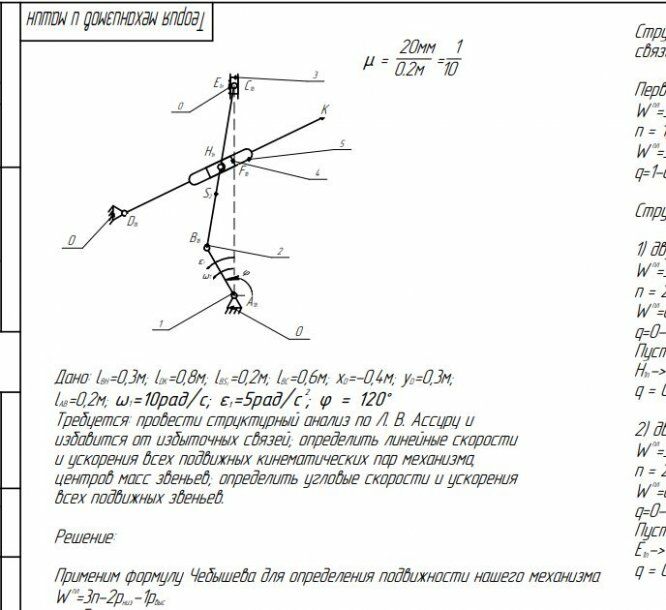 Для студентов МГТУ им. Н.Э.Баумана по предмету Теория механизмов и машин (ТММ)Структурный и кинематический анализ механизмаСтруктурный и кинематический анализ механизма