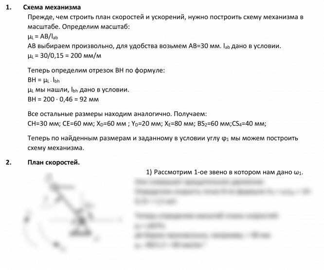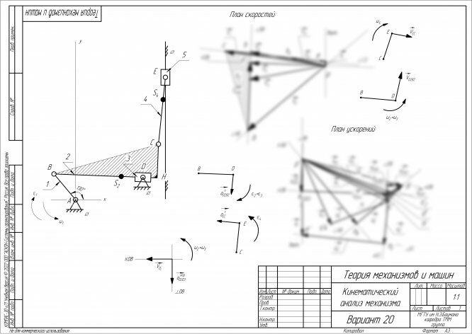 №1, 2 основные - план скоростей и ускорений и лист с решением (формулами);
