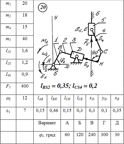 ДЗ 2: Силовой расчёт плоских рычажных механизмов вариант 20В вариант 20В