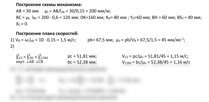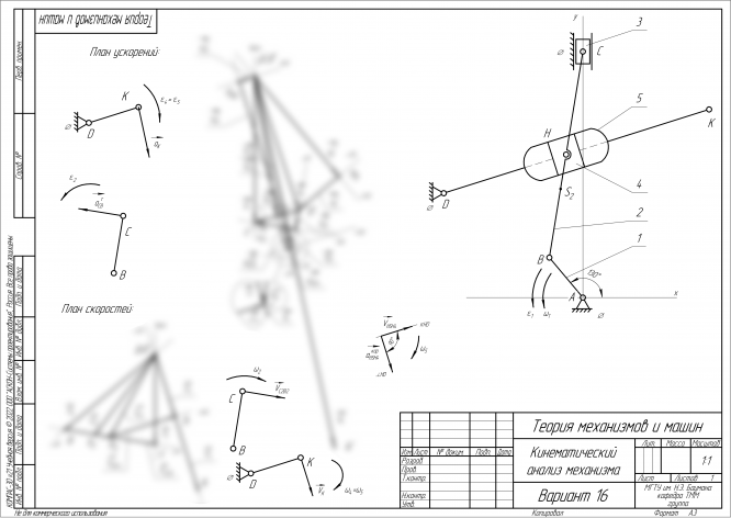 №1, 2 основные - план скоростей и ускорений и лист с решением (формулами);
