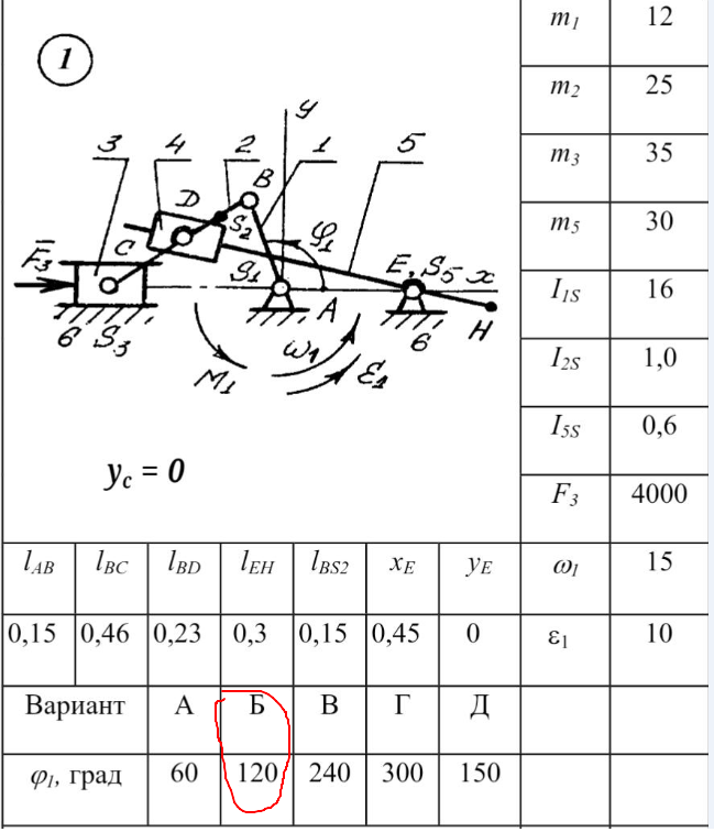 ДЗ: Кинематический и силовой анализы вариант 1б