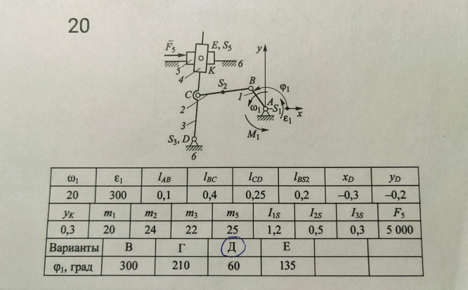 ДЗ Д: Структурный и кинематический анализ механизма вариант 20