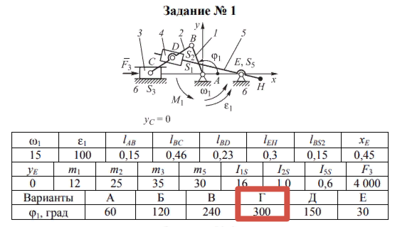 ДЗ 1: Кинематический анализ (Угол 300) вариант 1, Г