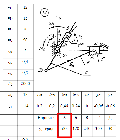 ДЗ 2: Кинетостатический силовой анализ рычажных механизмов вариант 14