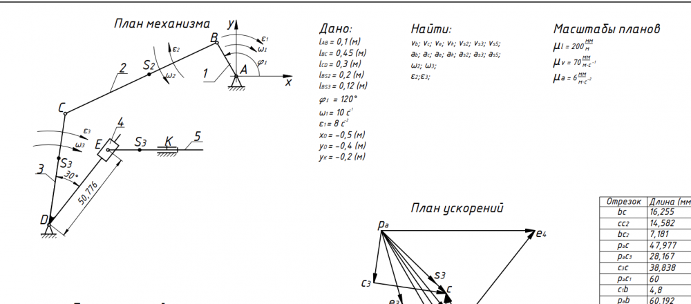 Вариант 22 - ДЗ №1 - Структурный и Кинематический анализ (угол 120)