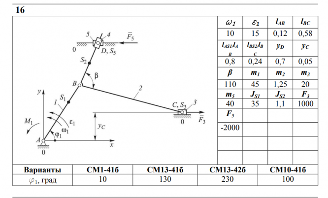ДЗ 1: Кинематический анализ рычажных механизмов вариант 16