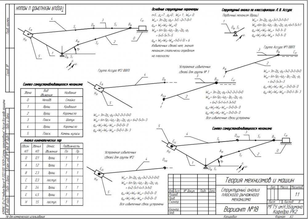 Для студентов МГТУ им. Н.Э.Баумана по предмету Теория механизмов и машин (ТММ)Теорема механик и машинТеорема механик и машин