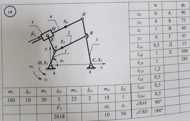 ДЗ 2: Силовой анализ рычажных механизмов вариант 19