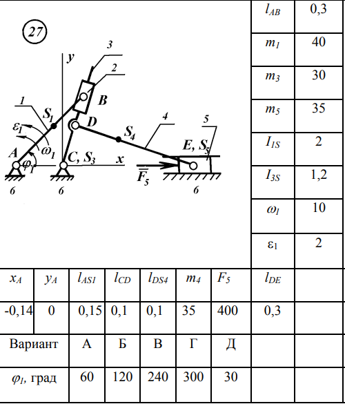 ДЗ 1: Кинематический расчет рычажного механизма вариант 27