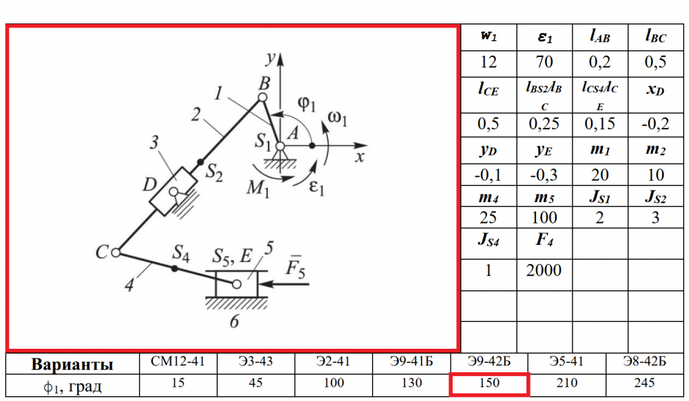 👉ДЗ №2: Силовой анализ рычажного механизма