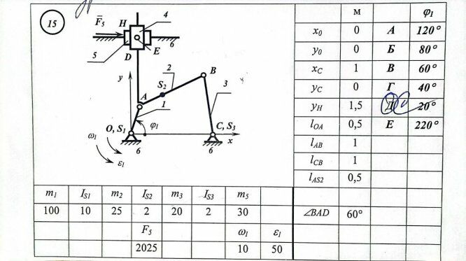 Принятая работа Структурный анализ + Кинематический анализ, вариант 15Д, угол 20° .