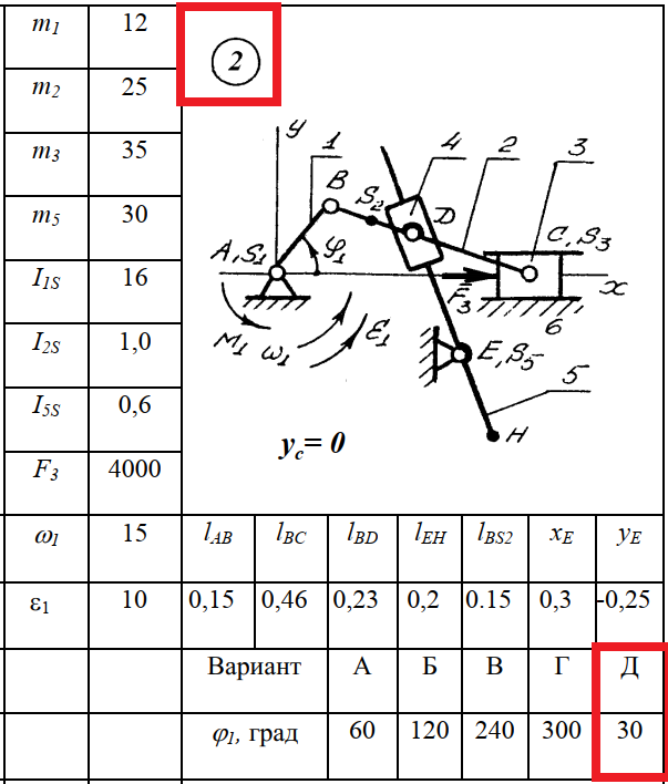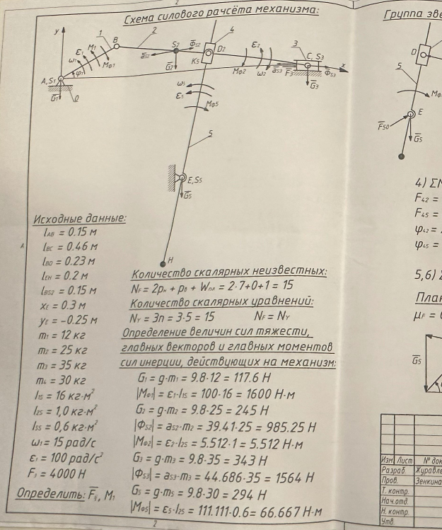 ДЗ 2: Силовой анализ рычажного механизма (Угол фи=30 град) вариант 2