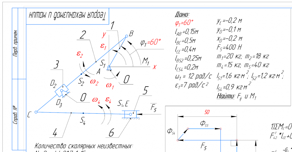 👉ДЗ №2: Силовой анализ рычажного механизма (Вариант 19А)
