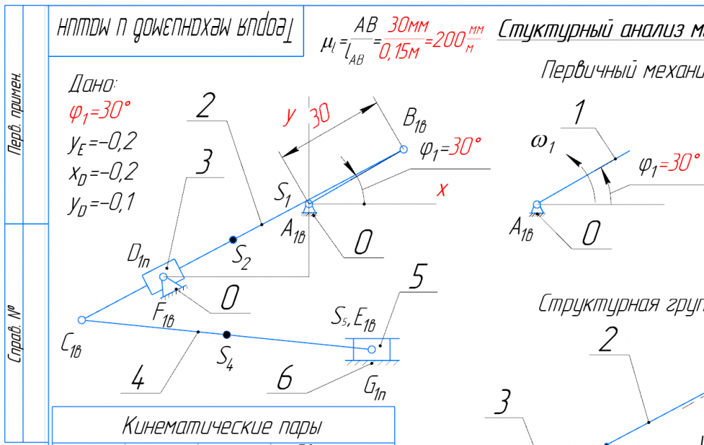 👉ДЗ №1: Структурный + Кинематический анализ рычажного механизма (Вариант 19Д)