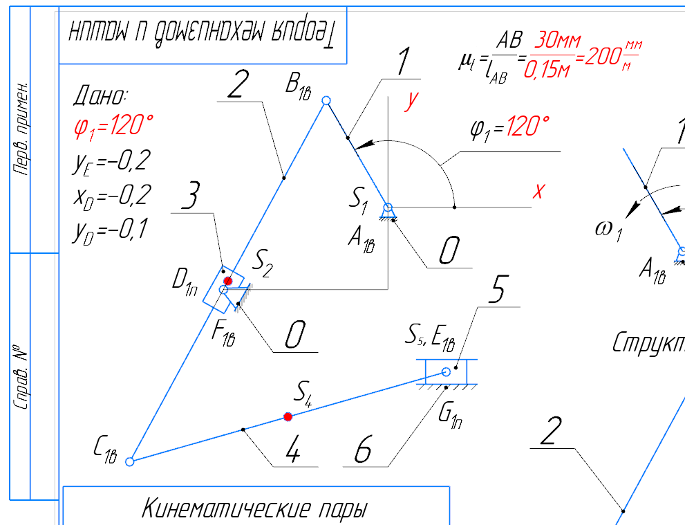 👉ДЗ №1: Структурный + Кинематический анализ рычажного механизма (Вариант 19Б)