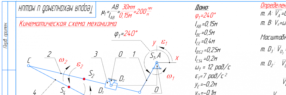 👉ДЗ №1: Структурный + Кинематический анализ рычажного механизма (Вариант 19В)