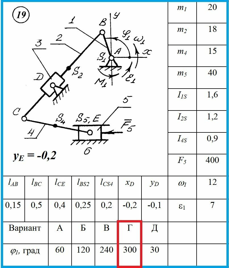 👉ДЗ №2: Силовой анализ рычажного механизма (Вариант 19Г)