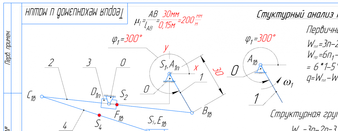 Главная » Учебные материалы » Теория механизмов и машин (ТММ) » Домашние задания » МГТУ им. Н.Э.Баумана » 4 семестр » Номер 1 » Вариант 19 » Структурный + Кинематический анализ и Силовой анализ рычажного механизма (КОМПАС 3D - Угол фи=300 град)