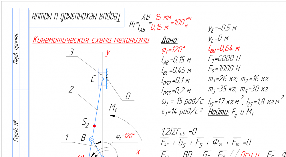 👉ДЗ №2: Силовой анализ рычажного механизма (Вариант 6Б)