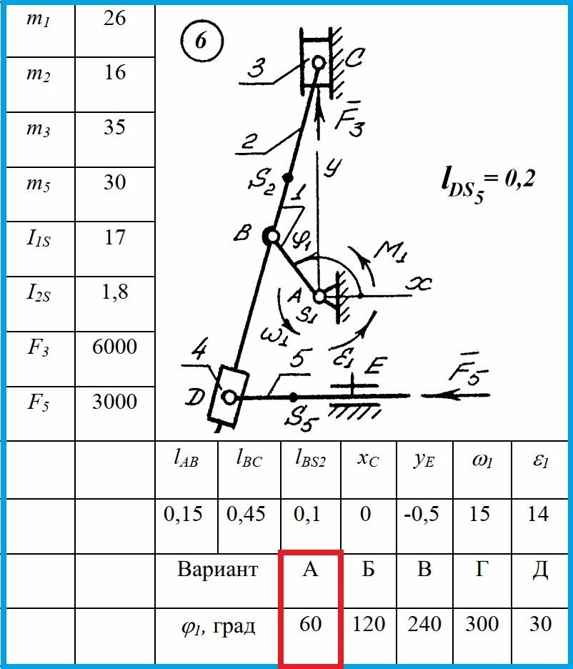 👉ДЗ №2: Силовой анализ рычажного механизма (Вариант 6А)