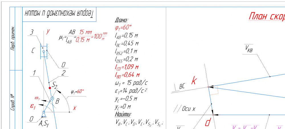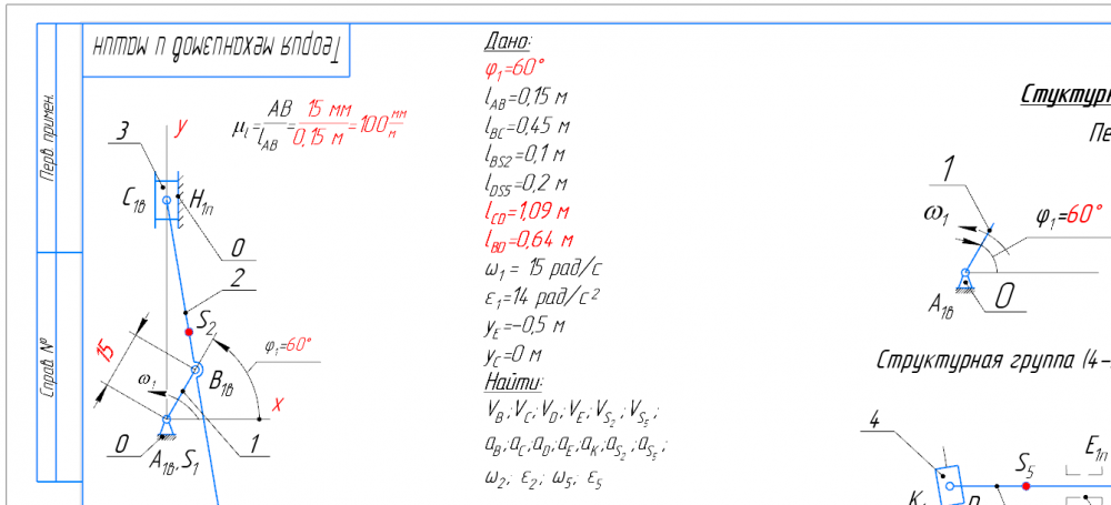 👉ДЗ №1: Структурный + Кинематический анализ рычажного механизма (Вариант 6А)