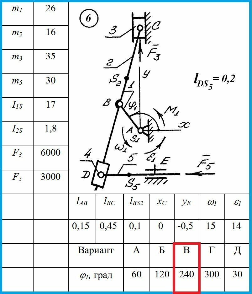 👉ДЗ №2: Силовой анализ рычажного механизма (Вариант 6В)