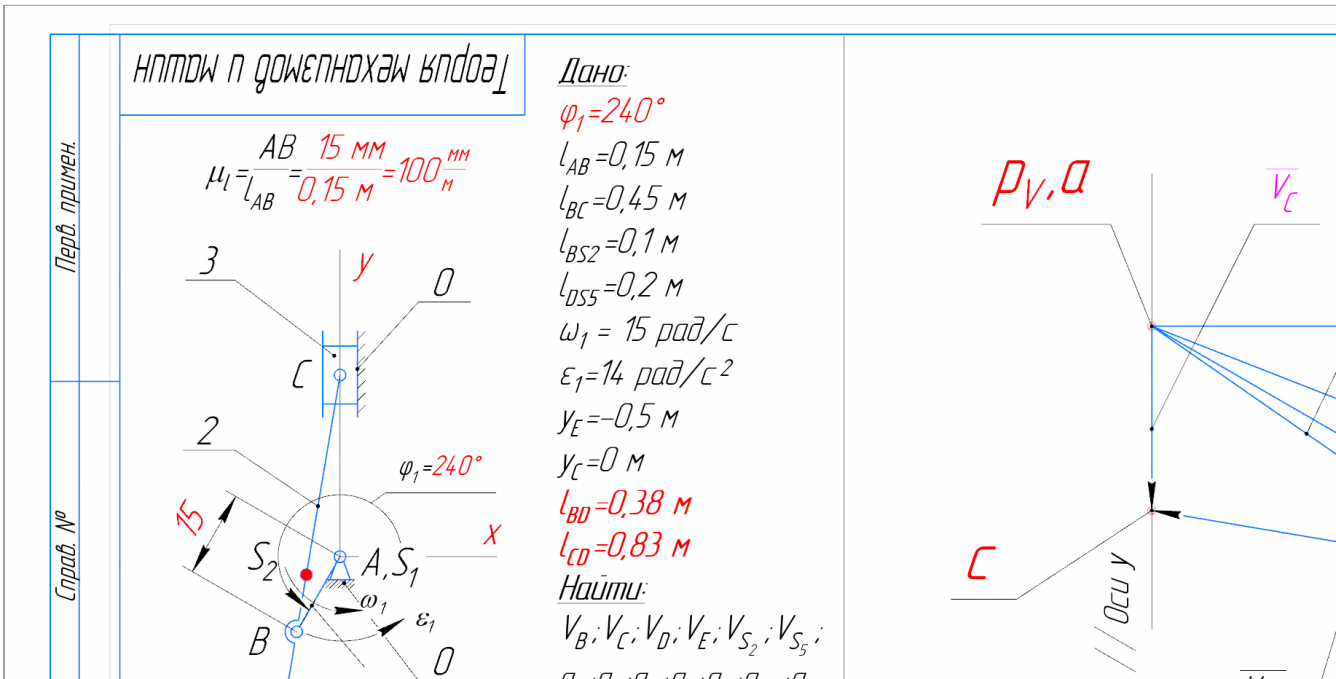 👉ДЗ №1: Структурный + Кинематический анализ рычажного механизма (Вариант 6В)
