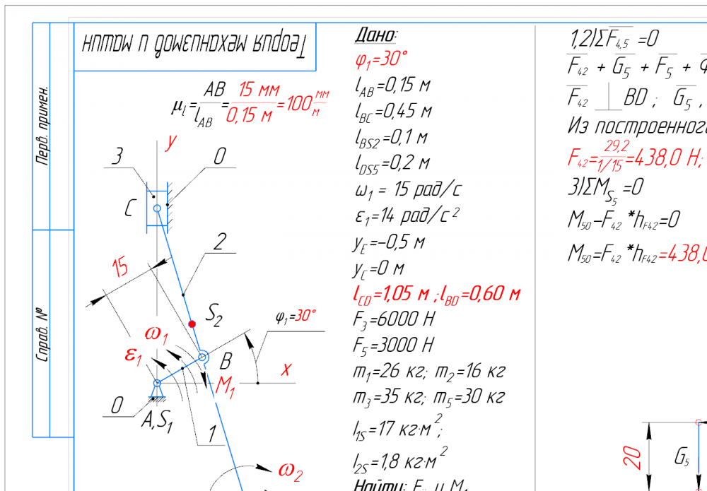 Главная » Учебные материалы » Теория механизмов и машин (ТММ) » Домашние задания » МГТУ им. Н.Э.Баумана » 4 семестр » Номер 2 » Вариант 6 » Силовой анализ рычажного механизма (КОМПАС 3D - Угол фи=30 град)