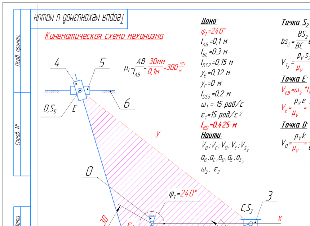 👉ДЗ №1 + №2: Структурный + Кинематический анализ и Силовой анализ рычажного механизма (Вариант 4В)