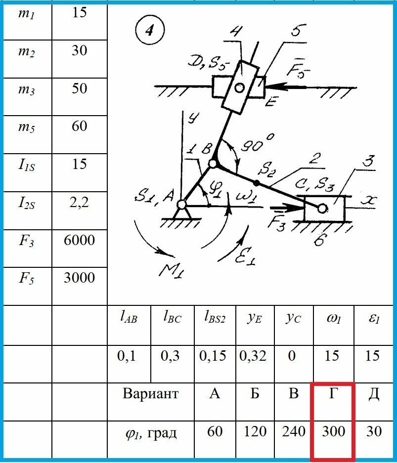 👉ДЗ №1 + №2: Структурный + Кинематический анализ и Силовой анализ рычажного механизма (Вариант 4Г)