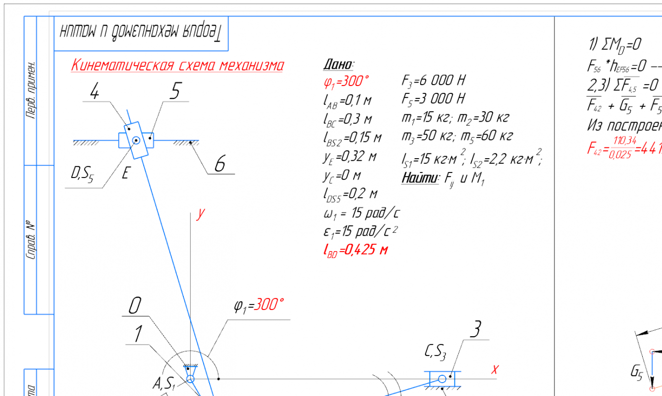 Главная » Учебные материалы » Теория механизмов и машин (ТММ) » Домашние задания » МГТУ им. Н.Э.Баумана » 4 семестр » Номер 2 » Вариант 4 » Силовой анализ рычажного механизма (КОМПАС 3D - Угол фи=300 град)