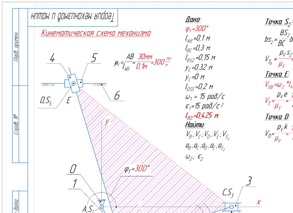 Главная » Учебные материалы » Теория механизмов и машин (ТММ) » Домашние задания » МГТУ им. Н.Э.Баумана » 4 семестр » Номер 1 » Вариант 4 » Структурный + Кинематический анализ и Силовой анализ рычажного механизма (КОМПАС 3D - Угол фи=300 град)