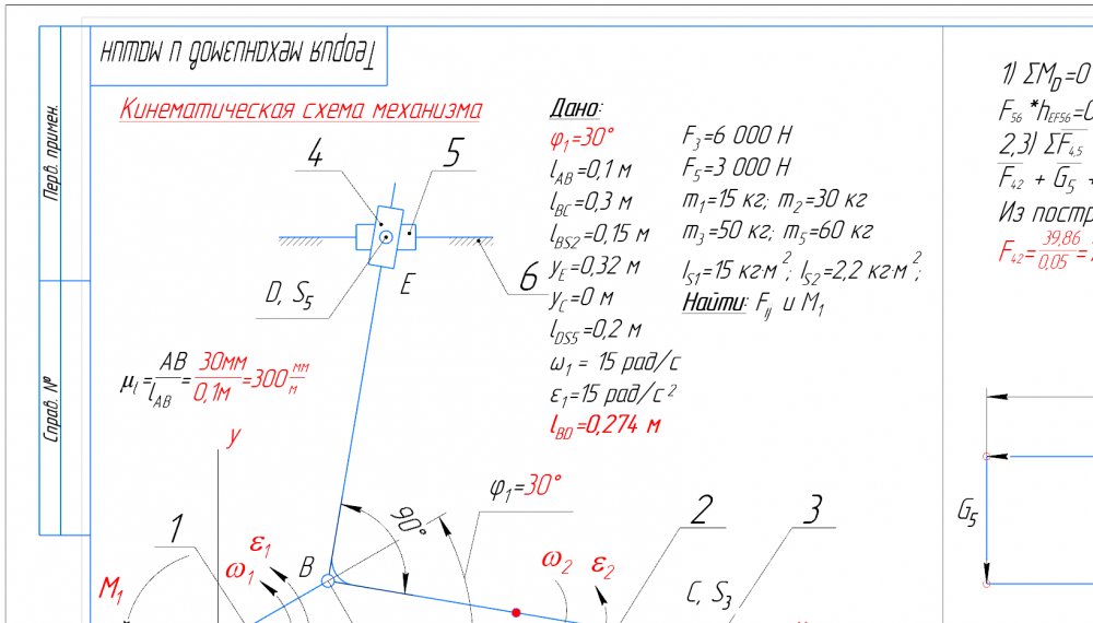 👉ДЗ №2: Силовой анализ рычажного механизма (Вариант 4Д)