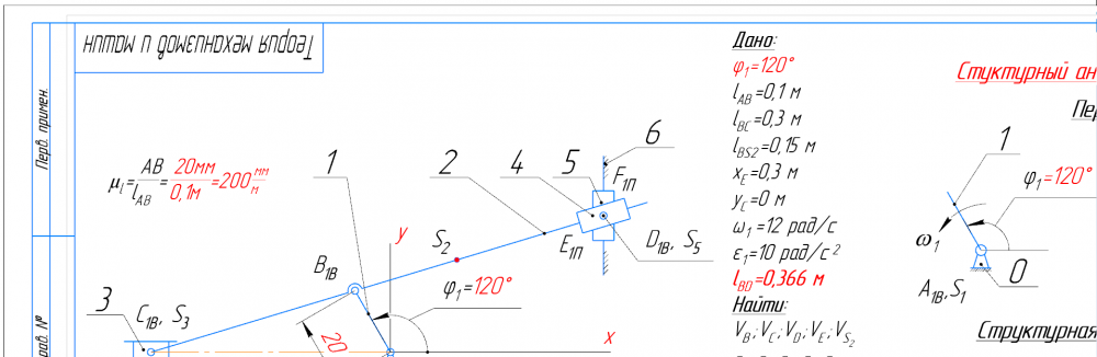 👉ДЗ №1 + №2: Структурный + Кинематический анализ и Силовой анализ рычажного механизма (Вариант 3Б)