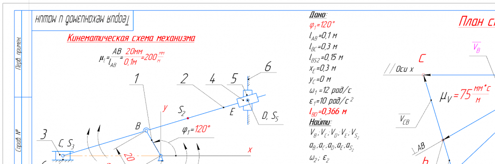 Для студентов МГТУ им. Н.Э.Баумана по предмету Теория механизмов и машин (ТММ)Структурный + Кинематический анализ рычажного механизма (КОМПАС 3D - Угол фи=120 град)Структурный + Кинематический анализ рычажного механизма (КОМПАС 3D - Угол фи=120 град)