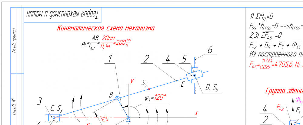 👉ДЗ №1 + №2: Структурный + Кинематический анализ и Силовой анализ рычажного механизма (Вариант 3Б)