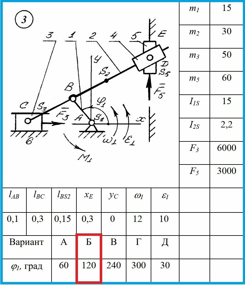 👉ДЗ №2: Силовой анализ рычажного механизма (Вариант 3Б)